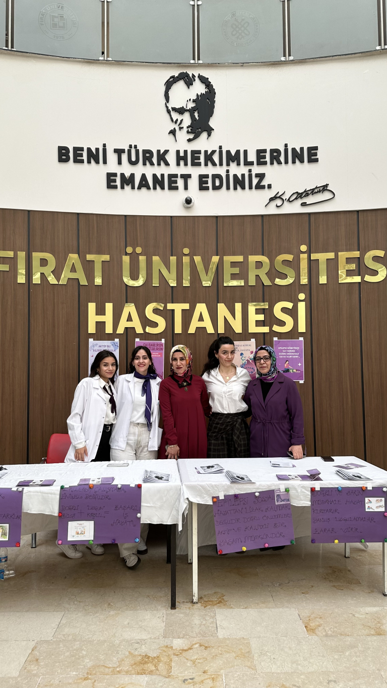 Fırat Üniversitesi Ebelik Bölümü Toplumsal Katkı Komisyonu ile İç Hastalıkları Hemşireliği Anabilim Dalı tarafından, Fırat Üniversitesi Hastanesi poliklinik girişinde 26 Mart Mor Gün Epilepsi Farkındalık Günü kapsamında etkinlik düzenlendi.